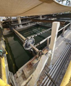 The progressive accumulation of sludge at the bottom of the DAF cells has reached critical levels, causing clogging of drainage systems and increasing the risk of unplanned operational shutdowns.