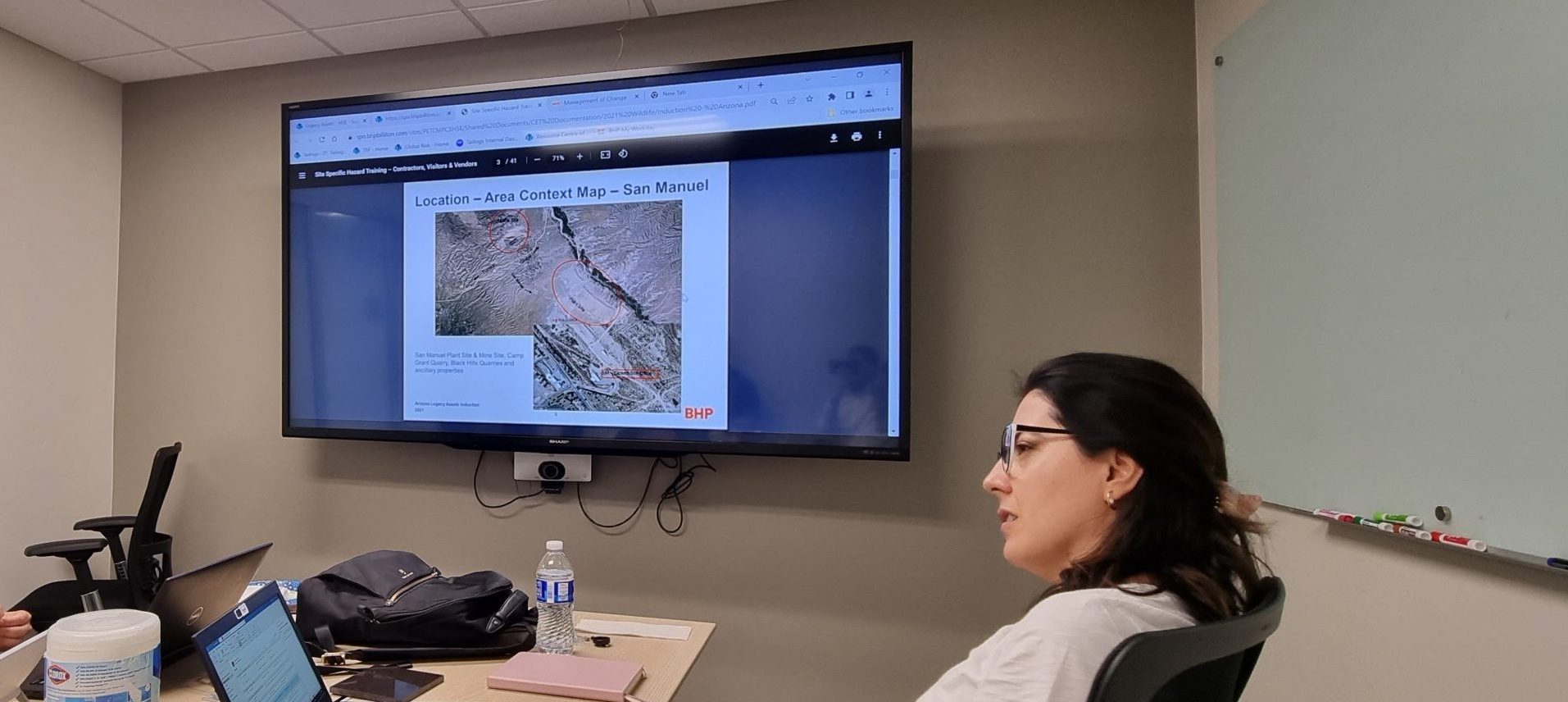 En el mes de septiembre (1 y 2), una delegación de BHP conformada por Ingrid Oyarzún, Head of Sustainabiity Innovation; Carlos Aros, Lead Innovation Procurement Americas, y Brigid O’Brien, Head of Ventures, viajó a Estados Unidos para evaluar los avances, definir los próximos pasos y conocer las instalaciones de las empresas que fueron seleccionadas para avanzar a la etapa de Prueba Piloto en ambiente controlado: Auxilium Technology Group y Americas Tailings Inc.
